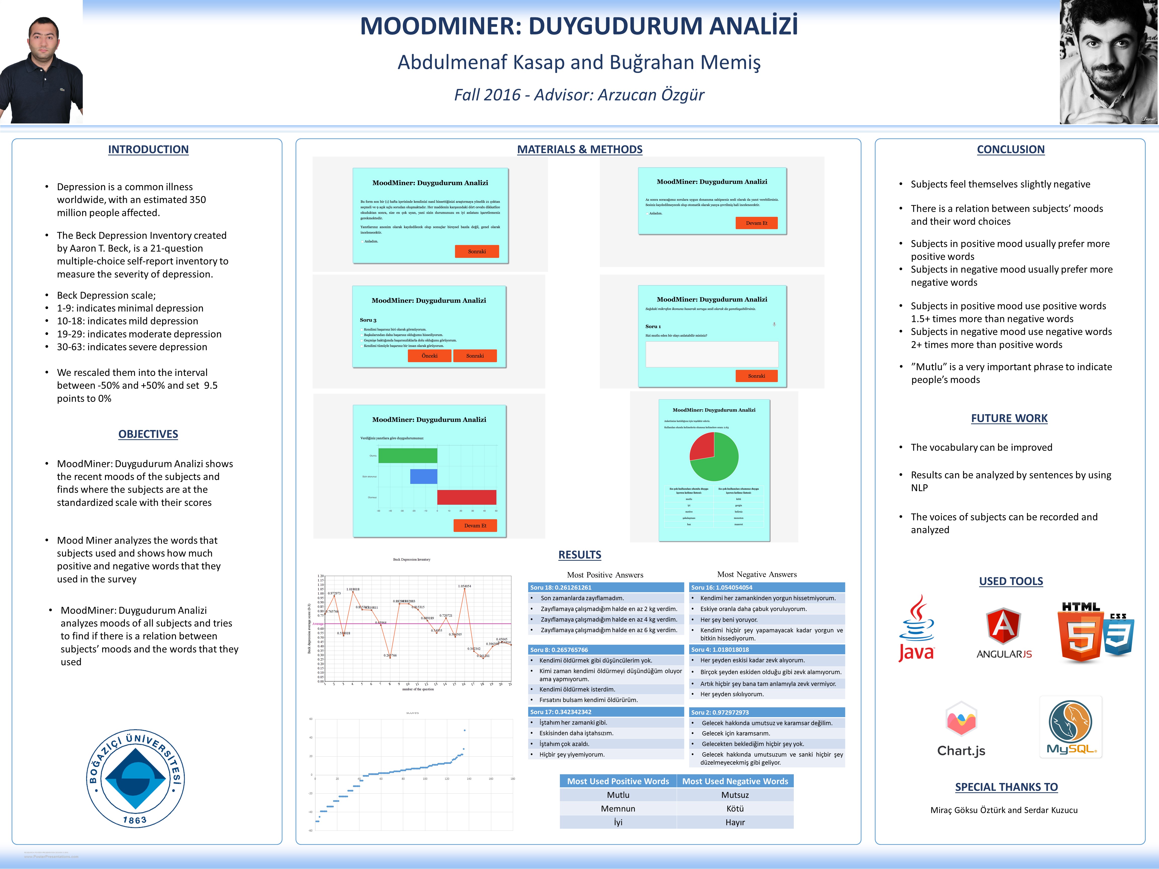 MoodMiner, is a questionnaire, analyzes the words that subjects used and shows the recent mood of the subjects. We analyzed moods of all subjects and tried to find if there is a relation between subjects’ moods and the words they used.